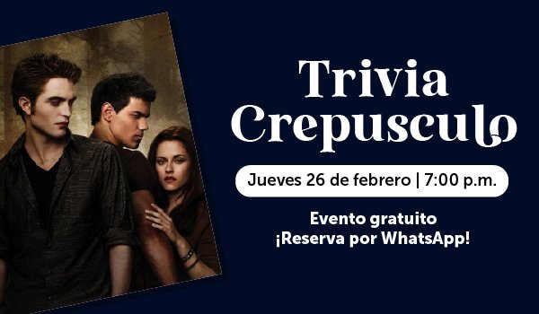 No importa si eres Team Edward o Team Jacob: esta noche todos brillamos. Ven a demostrar cuánto sabes sobre los Cullen, los Vulturi y la historia de amor que dividió al mundo.